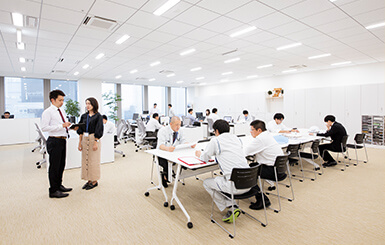 窓からの眺めも良く、仕切りのない解放感のあるワークスペースです。